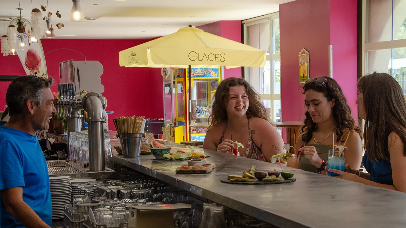 - An evening bar, closer to the beach, with its large animated terrace, games room and giant screen for sports broadcasts. You will also find a wide choice of ice creams.