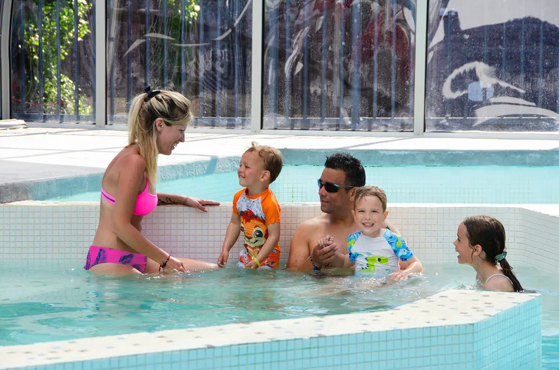 The campsite’s heated swimming pool is divided into 2 areas ;