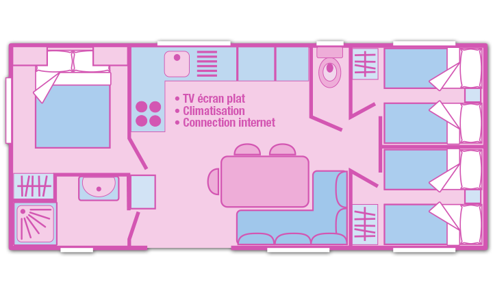 - Equipped kitchenette, hob, fridge-freezer, microwave,