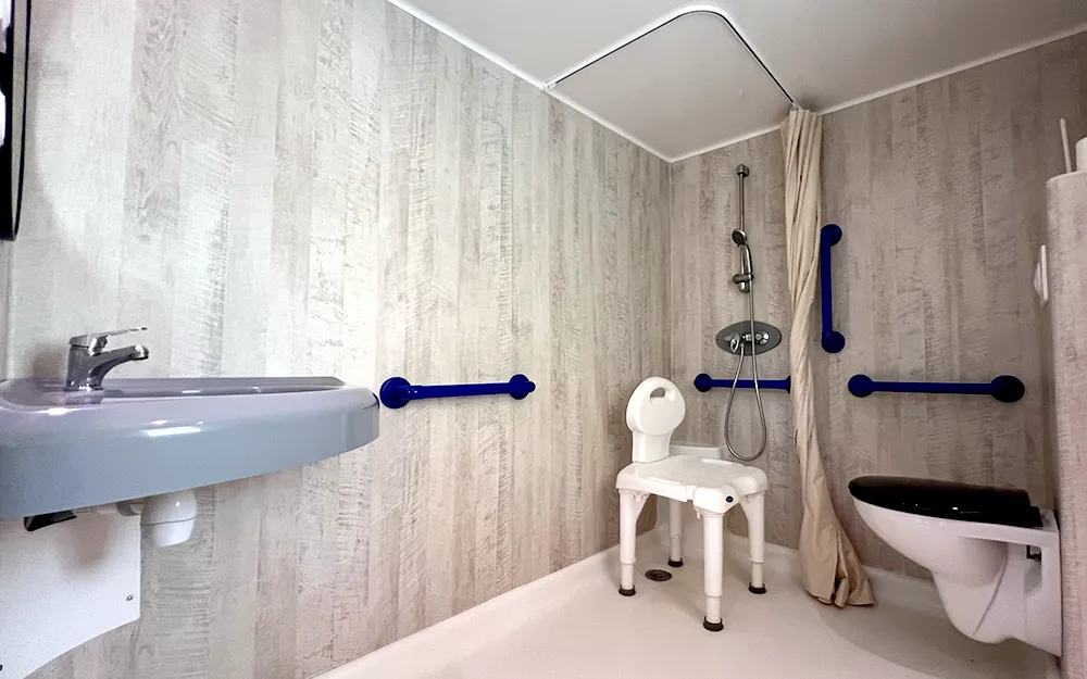All areas are suitable for wheelchairs, a spacious parent’s bedroom, walk-in shower with seat