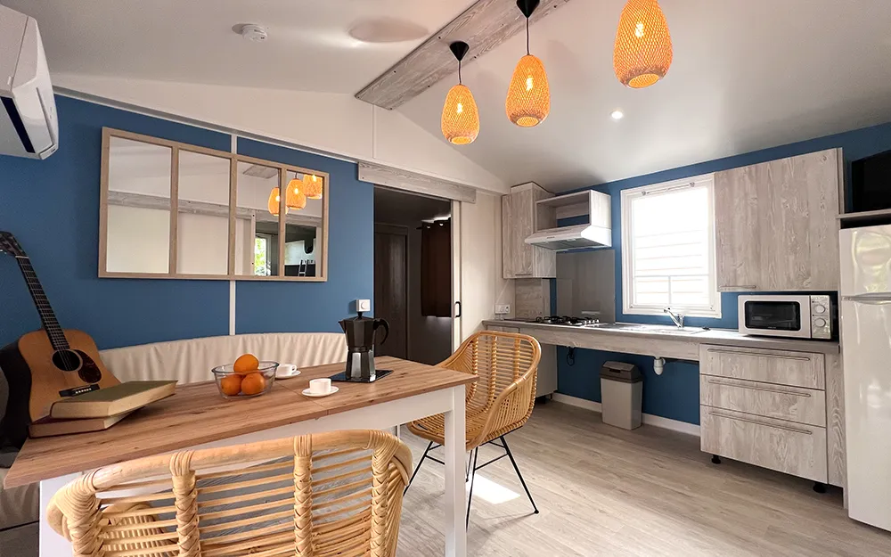 Equipped kitchenette, hob, fridge-freezer, microwave, - Combined shower room & toilet,