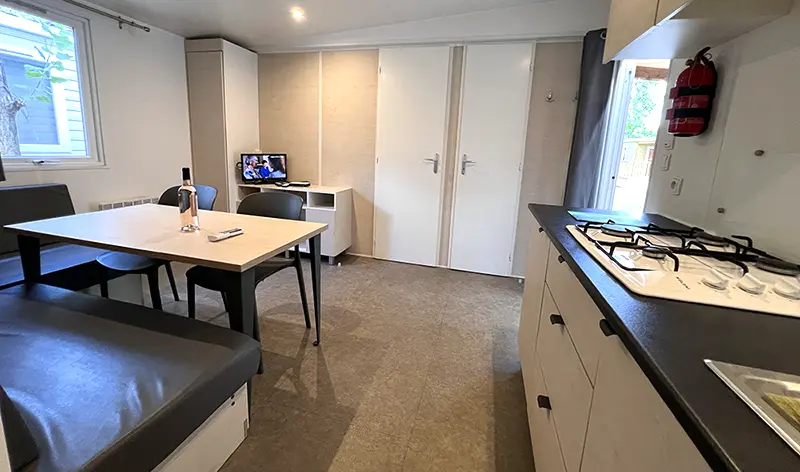 - Equipped kitchenette, hob, fridge-freezer, microwave,