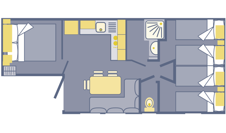 - Equipped kitchenette, hob, fridge-freezer, microwave